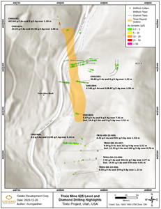 Osisko Development Intercepts 443.64 G/T Gold Over 1.19 Meters in Underground Sampling at Trixie, Tintic Project