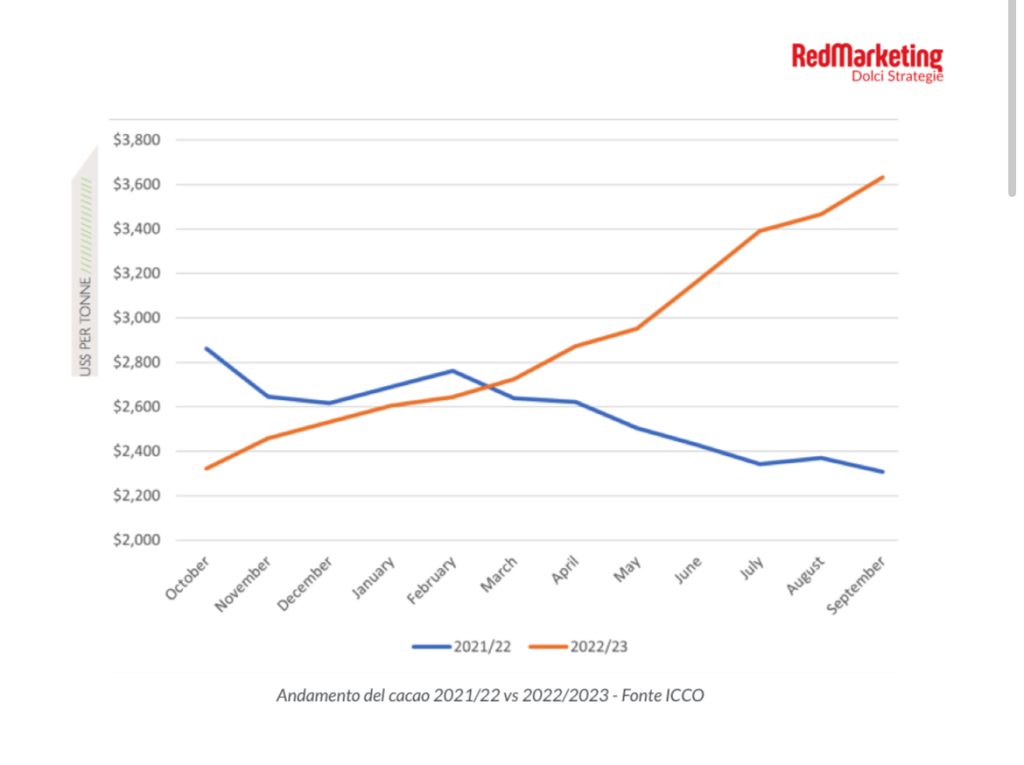 MILAN, ITALY, ITALY, December 24, 2023 /EINPresswire.com/ -- In the midst of the Christmas season, there is a significant increase in chocolate prices. An increase attributed to rising cocoa costs, which has already led to a 14 percent increase in the price of finished products over the past year. Worst of all, the price forecast is for a further 7 percent increase in the next five months, with raw material prices rising sharply in the short term.The data are from the new report "Cacao Insights 2024," a study just released by RedMarketing, an agency specializing in communication and marketing for bakeries and ice cream parlors.