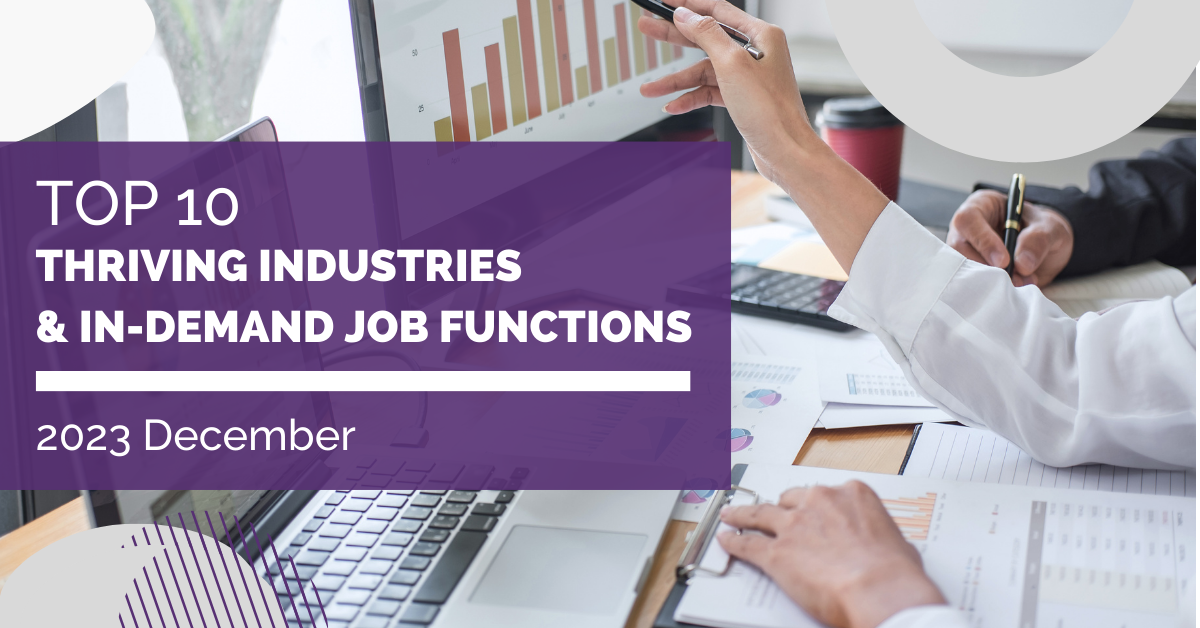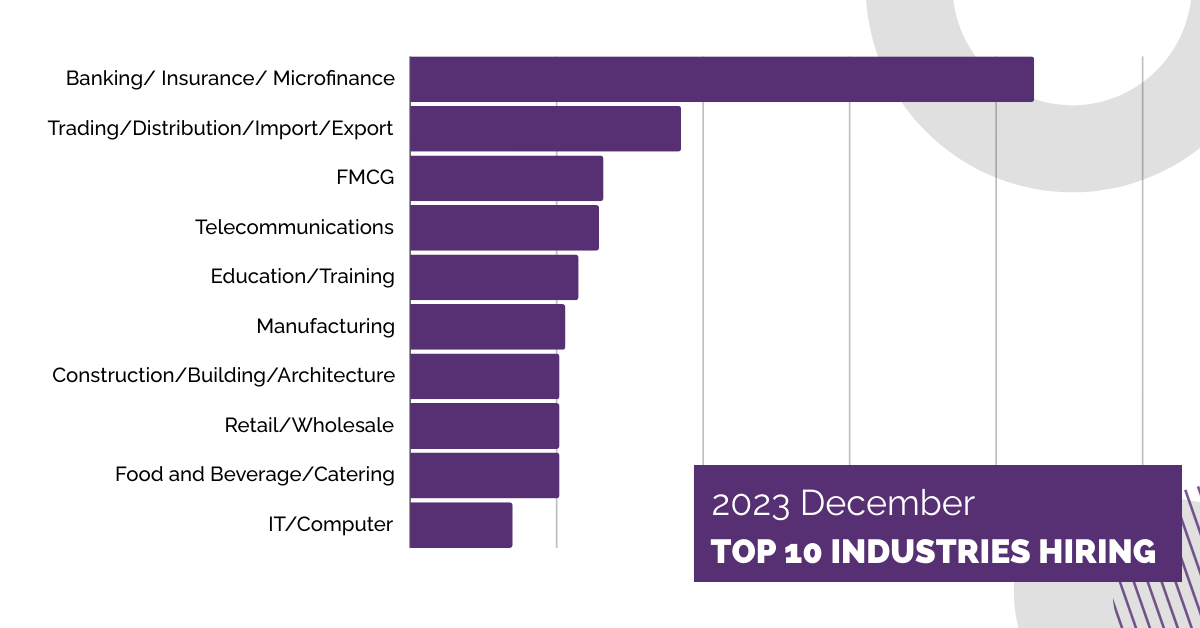 Hiring and employment trends in Myanmar showcasing the top 10 industries and job functions with the most job posts for December 2023