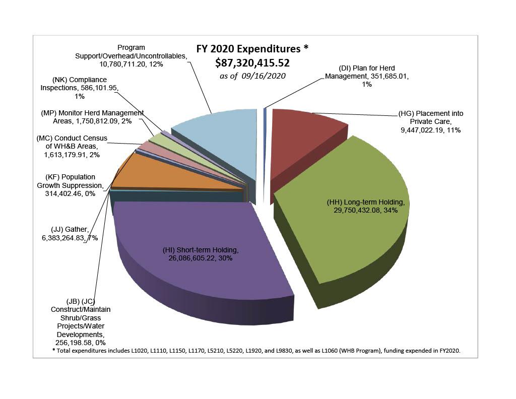 A growing number of people across the country support keeping wild equine on their designated federal lands. This is the low cost option. The budget chart shows how federal funds are currently primarily used to remove and house these equine in federal holding facilities or private short and long-term pastures. The chart reveals that most federal funds allocated to the WHB program are not used for herd management and planning or humane population oversight. Funds spent for these purposes amount to only 0% - 2% of the total allotment.