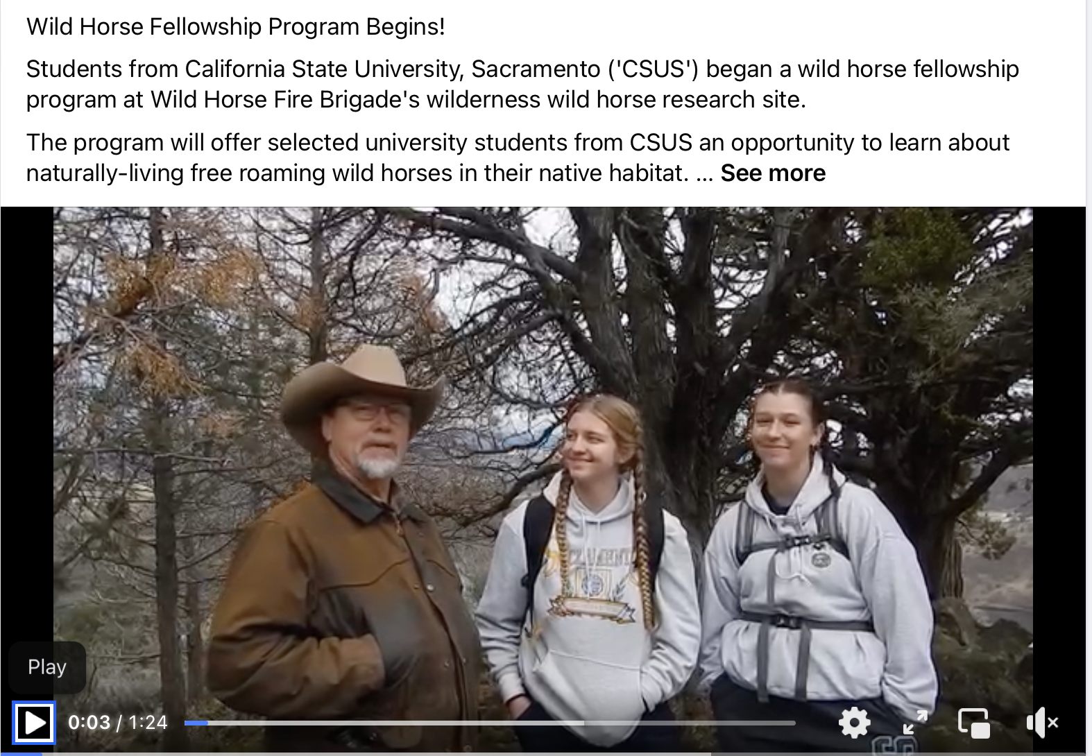 Wild Horse Fire Brigade started its wild horse Fellowship program with students from California State University, Sacramento