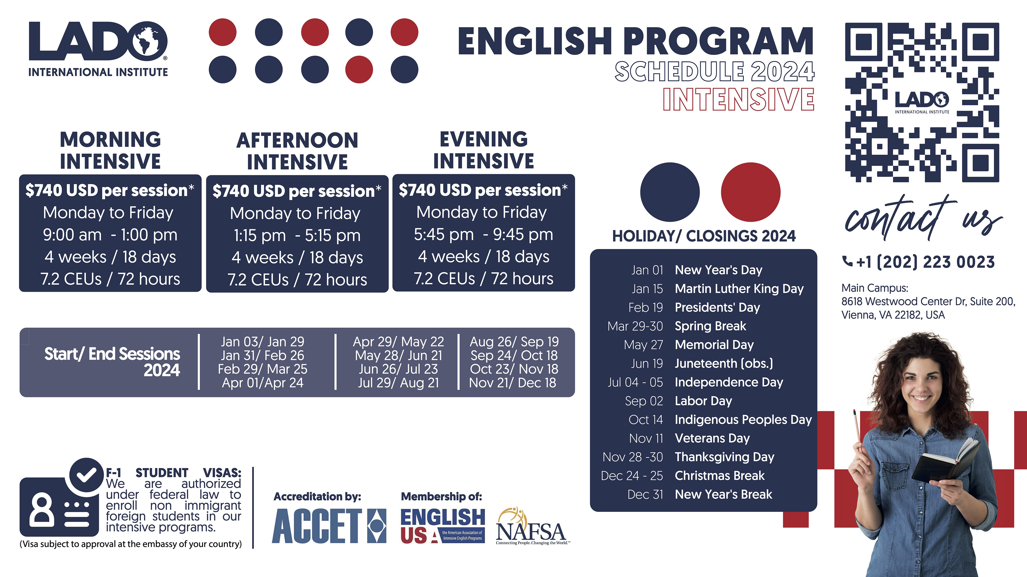 VIENNA, VIRGINIA, UNITED STATES, January 2, 2024 /EINPresswire.com/ -- Lado International Institute, recognized as one of the top ESL schools in the Washington area, is pleased to announce the renewal of its accreditation with ACCET (www.accet.org), the national accreditation agency for continuing education and training. This accreditation attests to the exceptional quality of programs, faculty, facilities, and services offered by Lado to students from various countries around the world.