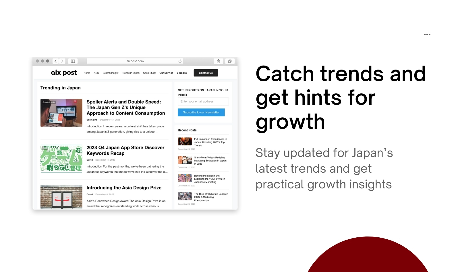 SHIBUYA, TOKYO, JAPAN, January 5, 2024 /EINPresswire.com/ -- aix Inc, based in Shibuya, Tokyo, proudly introduces aixpost, an up-to-date marketing media that mainly deals with trends and culture of Japan and how they affect the marketing. This launch marks a significant footstep in marketing media, particularly for those who want to advance to the Japanese market.Your Go-To Source for Japan's Marketing Insights: aixpost.com