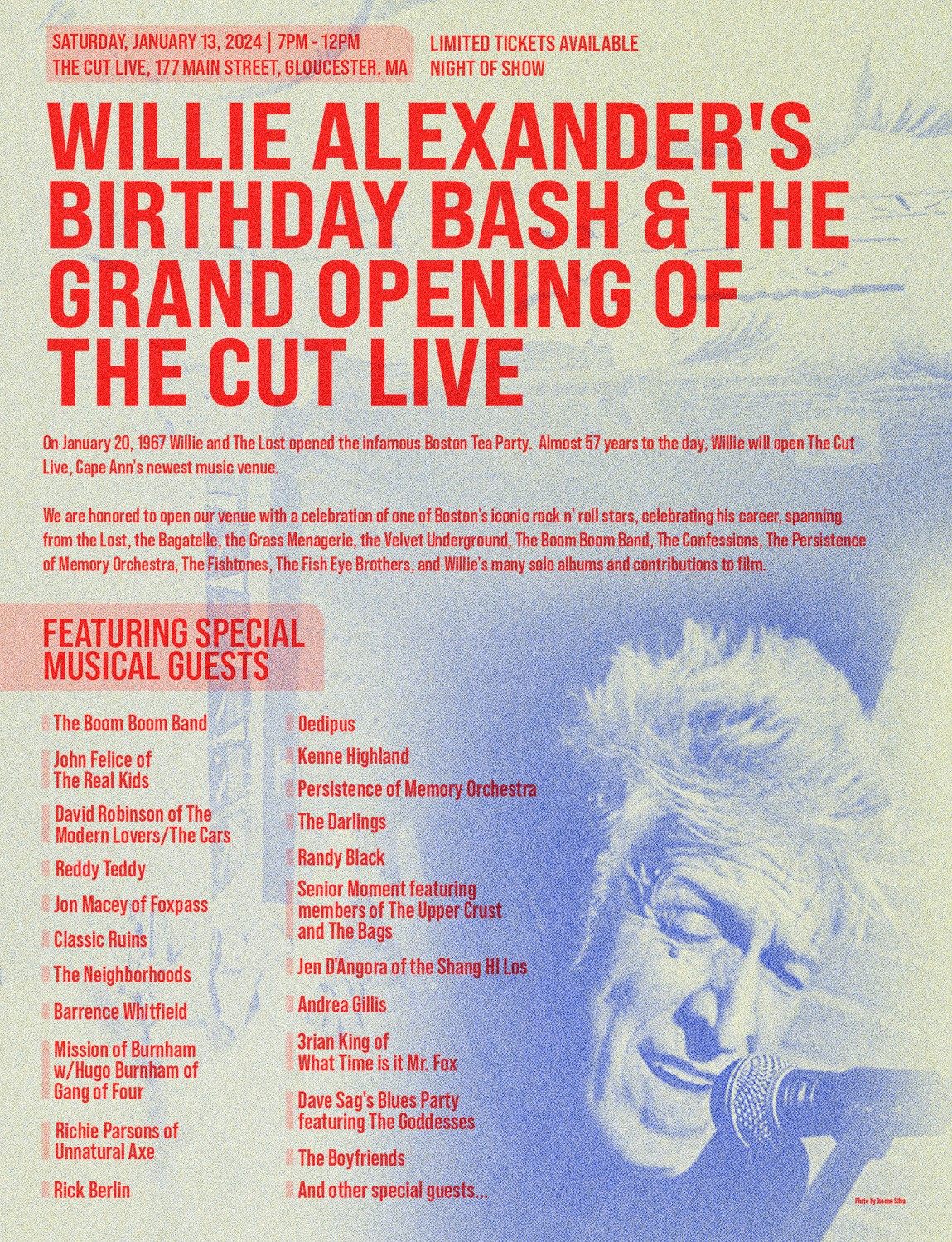 BOSTON MUSIC LEGENDS TO CELEBRATE THE GRAND OPENING OF THE CUT LIVE WITH WILLIE ALEXANDER’S BIRTHDAY BASH SAT JAN 13