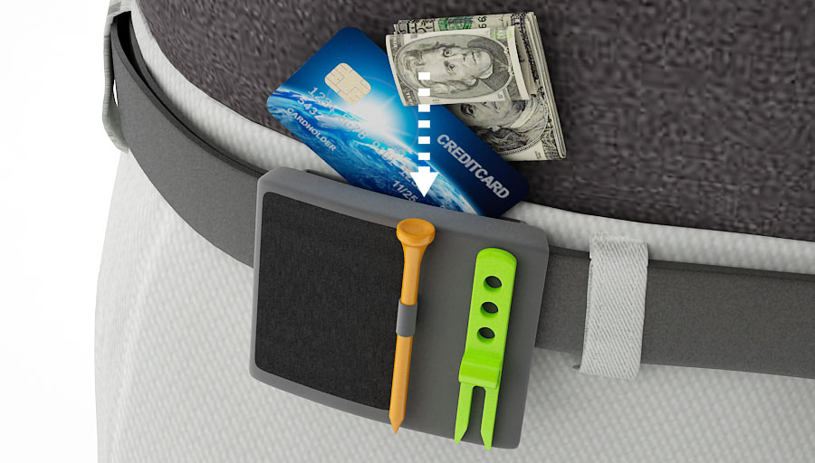 Multipurpose Golf Accessory Helps Secure a Golf Glove, Tee, and Divot Tool in an Easily Accessible Position