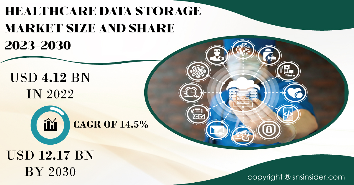 AUSTIN, TEXAS, UNITED STATES, January 16, 2024 /EINPresswire.com/ -- The healthcare data storage market, achieved a valuation of USD 4.12 billion in 2022, with projections indicating a growth to USD 12.17 billion by 2030. Anticipated to exhibit a Compound Annual Growth Rate (CAGR) of 14.5% during the forecast period from 2023 to 2030.As per SNS Insiderโs research, the growth of the healthcare data storage market is propelled by the surge in healthcare data volumes, the adoption of advanced medical technologies, the need for interoperability, and the integration of AI and ML in healthcare applications.