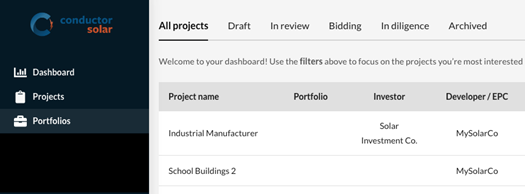 ABOUT CONDUCTOR SOLAR: Conductor Solar is a software company in the solar energy industry focused on the middle market. Conductor’s marketplace helps solar developers and EPCs find and contract with the best financing partners for their C&I and community solar projects. Founded by a team with deep development, EPC, and project finance backgrounds, Conductor was created to tackle the ridiculously high soft costs of getting projects funded and built. With targeted matches between projects and investors and workflow tools to streamline contracting, Conductor saves valuable time and increases close rates for everyone.