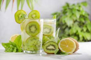 أولا، يجب غسل الليمون جيدا لإزالة أي بقايا الأوساخ على قشر. ثم قم بتقطيعها ووضع القطع أو الشرائح الناتجة في إبريق. ثم انتقل إلى الكيوي، الذي يجب تقشيره وتقطيعه إلى شرائح أو تقطيعه، حسب الذوق الشخصي. يجب إضافة الكيوي إلى الليمون الموجود في الإبريق، والذي يجب ملؤه بالماء في درجة حرارة الغرفة.