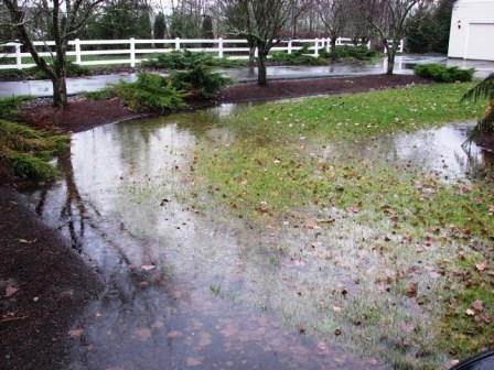 The key to correcting the problem can be a difficult task. There are several solutions to correct drainage problems. Some as simple as re-grading a portion of the lawn for positive water flow, extending the drain lines from your downspouts or simply adding a French drain system. Either way getting the water moving away from structures is essential to maintaining the value of homes and landscape.