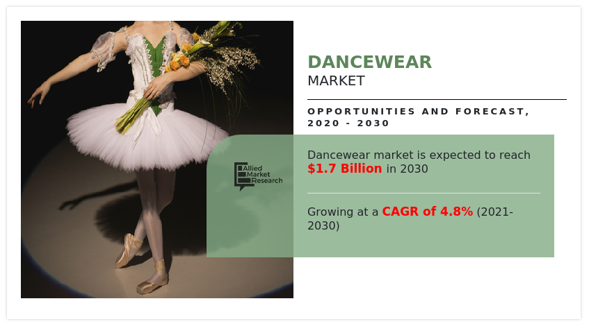 PORTLAND, 5933 NE WIN SIVERS DRIVE, #205, UNITED STATE, January 19, 2024 /EINPresswire.com/ -- According to a new report published by Allied Market Research, titled, “Dancewear Market," The dancewear market size was valued at $1.1 billion in 2020, and is estimated to reach $1.7 billion by 2030, growing at a CAGR of 4.8% from 2021 to 2030. Dancewear is a type of clothing and footwear that comes in a variety of colors, fabrics, materials, sizes, and designs that are suitable for a certain range of dance genres. It is designed to suit aesthetic requirements while also increasing involvement in the dance is performed.