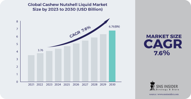 According to the latest SNS Insider report, the Cashew Nutshell Liquid Market was valued at USD 3.76 billion in 2022, projected to reach USD 6.76 billion by 2030, with a robust CAGR of 7.6% during the forecast period from 2023 to 2030.