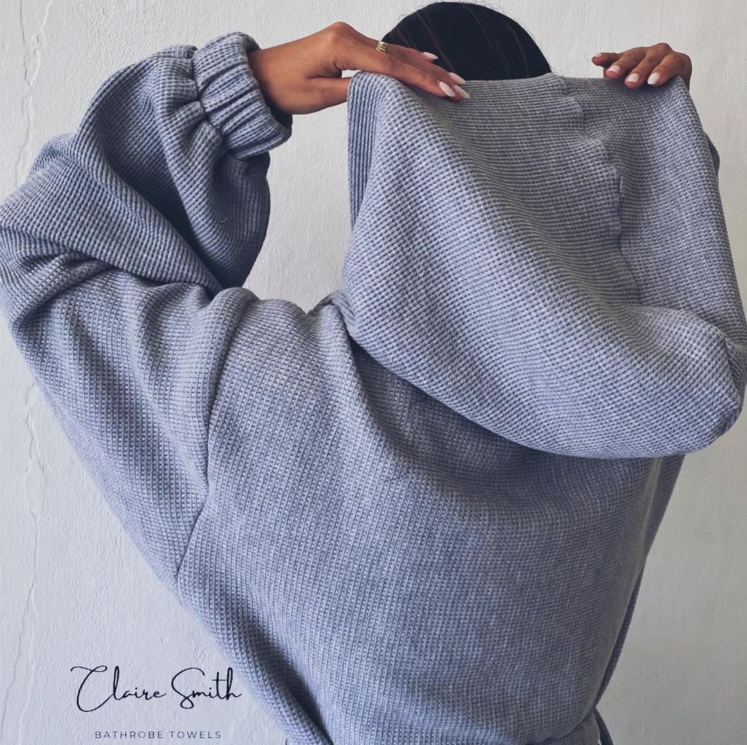 The towel helps maintain environmental sustainability, reducing the number of laundry loads required when compared to standard bath towels. In addition to drying the wearer off, the robe will provide great cover while leaving the bathroom. The armpit seam needs to be down to the pocket so it’s more of a bat wing as it’ll be easier to put an arm in when it’s wet. The robe utilizes a viscous combination of materials, bamboo, cotton, and hemp for construction, featuring both sleek and waffle-style materials. It is designed as a hooded head to floor bathrobe with two ties sewn in at the waist line that keep it secure to the body. The hood is designed for multipurpose use, as it will be used as a hair towel, face towel, and to hang on a hook.