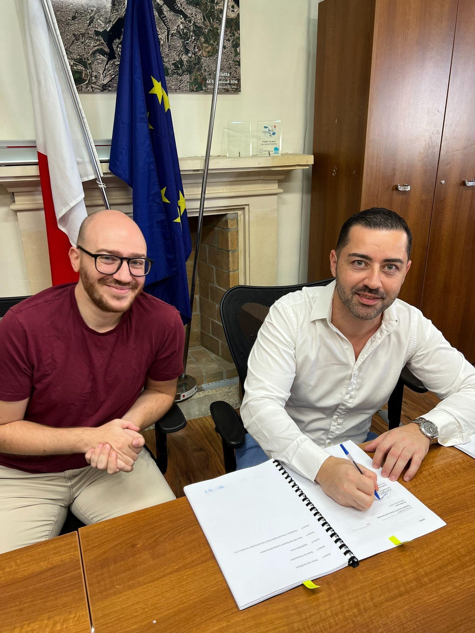 Stephen Borg, Senior Executive R&I Unit, MCST and Jonathan Azzopardi Frantz, CEO, Tableo sign TESP agreement.