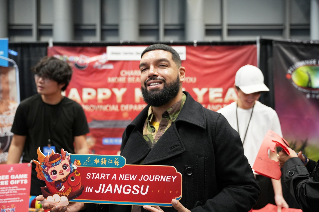 In a vibrant display of culture, the Jiangsu Pavilion at the New York Travel & Adventure Show, adorned in the auspicious hues of Chinese red, creates a festive and warm New Year atmosphere, bringing the traditions of the Jiangsu Spring Festival to New York. The booth showcased exquisite Nanjing gold leaf and Xuzhou paper-cutting, capturing the attention of numerous visitors. These art forms not only carry the rich history of Jiangsu but also embody the distinctive cultural characteristics of the region.