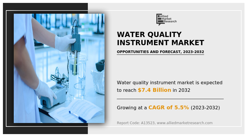 WILMINGTON, DELAWARE, January 30, 2024 /EINPresswire.com/ -- According to a new report published by Allied Market Research, titled, The water quality instrument market size was valued at $4.4 billion in 2022, and is estimated to reach $7.4 billion by 2032, growing at a CAGR of 5.5% from 2023 to 2032.