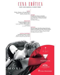 Hotel Matilda's Moxi serves as the seductive backdrop to this erotic, epicurean journey. The menu is curated by Michelin-starred Executive Chef, Vicente Torres, as well as Hugo Sandoval, Chef of Casa Madero, one of the leading wineries in Mexico.