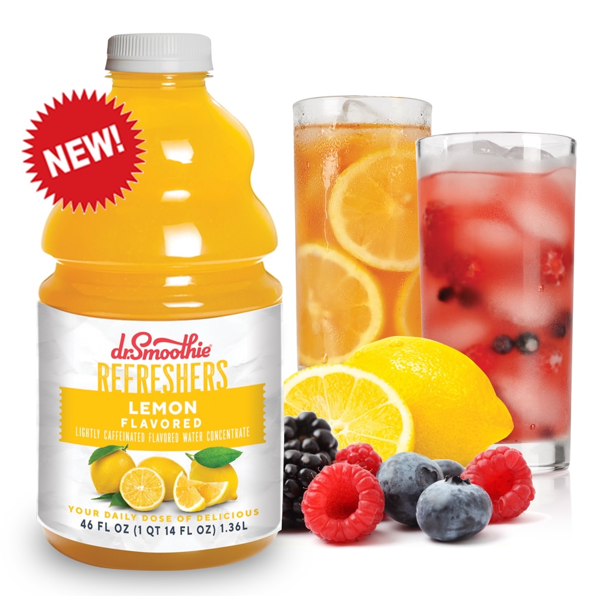 The new Lemon flavor extension joins its existing portfolio of Dr. Smoothie Refreshers that include Strawberry Acai, Watermelon Cucumber Mint, Wildberry Hibiscus, Peach Mango, Blood Orange Coconut Ginger, Dragon Fruit Lychee, and Watermelon Kiwi.