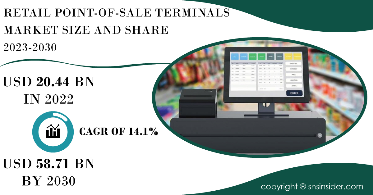 AUSTIN, TEXAS, UNITED STATES, February 1, 2024 /EINPresswire.com/ -- Market Report Scope & OverviewThe Retail Point-Of-Sale Terminals Market, valued at USD 20.44 billion in 2022, is anticipated to witness substantial growth, reaching USD 58.71 billion by 2030. The forecast period from 2023 to 2030 is expected to see a remarkable Compound Annual Growth Rate (CAGR) of 14.1%.