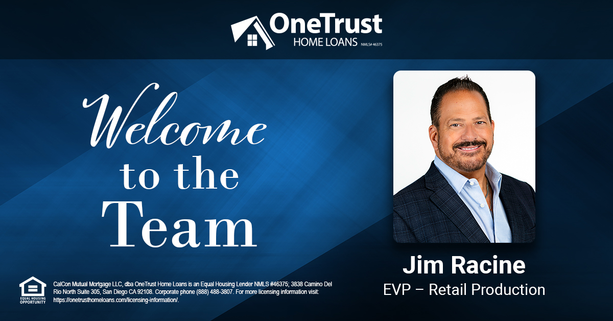 OneTrust Home Loans is excited to announce the appointment of Jim Racine as Executive Vice President of Retail Production.