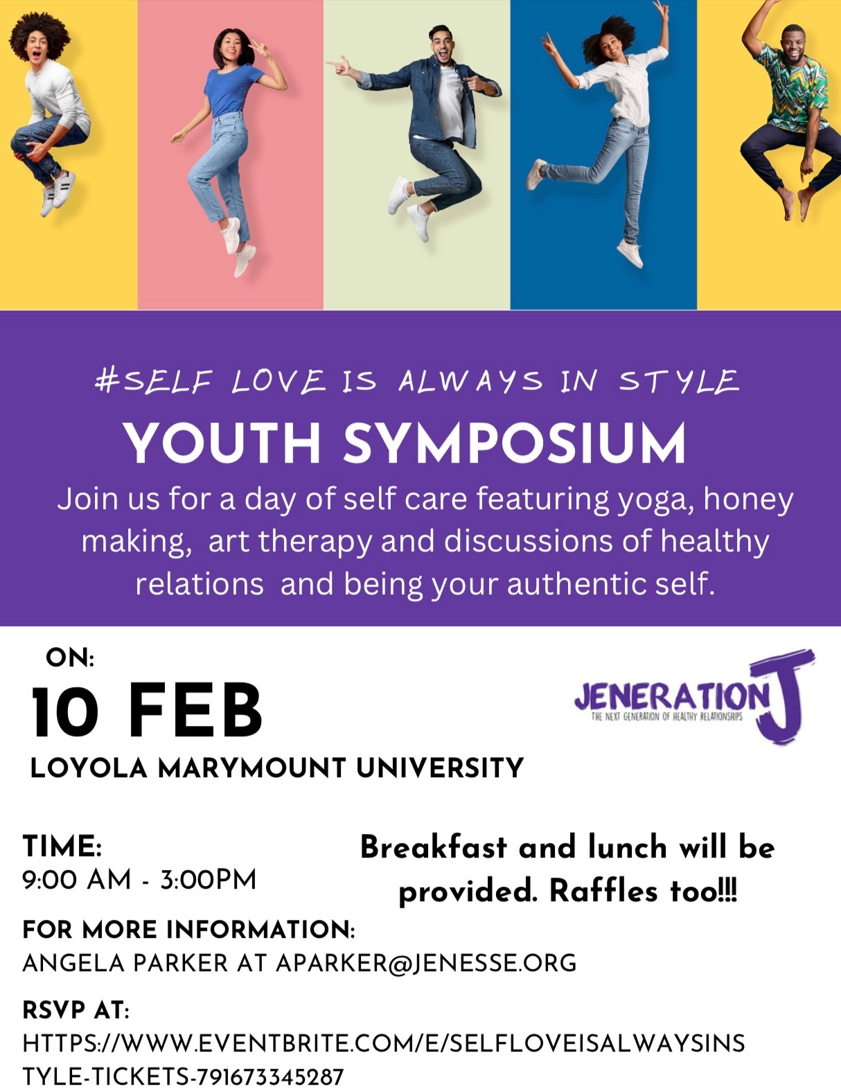 To learn more about the Youth Symposium or to register, please contact Dr. Angela Parker at aparker@jenesse.org or visit the Eventbrite page at https://www.eventbrite.com/e/selfloveisalwaysinstyle-tickets-791673345287