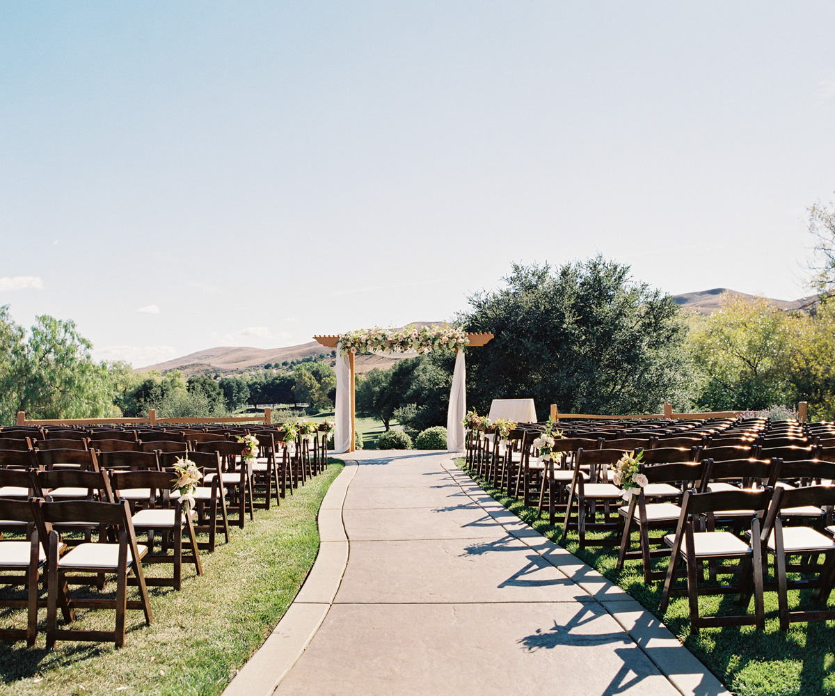 For traditional outdoor nuptials, Hiddenbrooke Hills offers two gorgeous settings to exchange vows while immersed in nature. The idyllic Fairways Ceremony area overlooks the rolling hills of the manicured year-round green landscape. Alternatively, choose the secluded Garden Room and say I Do on the adjacent patio surrounded by your nearest and dearest with a wide wood beam archway and flowing draping.