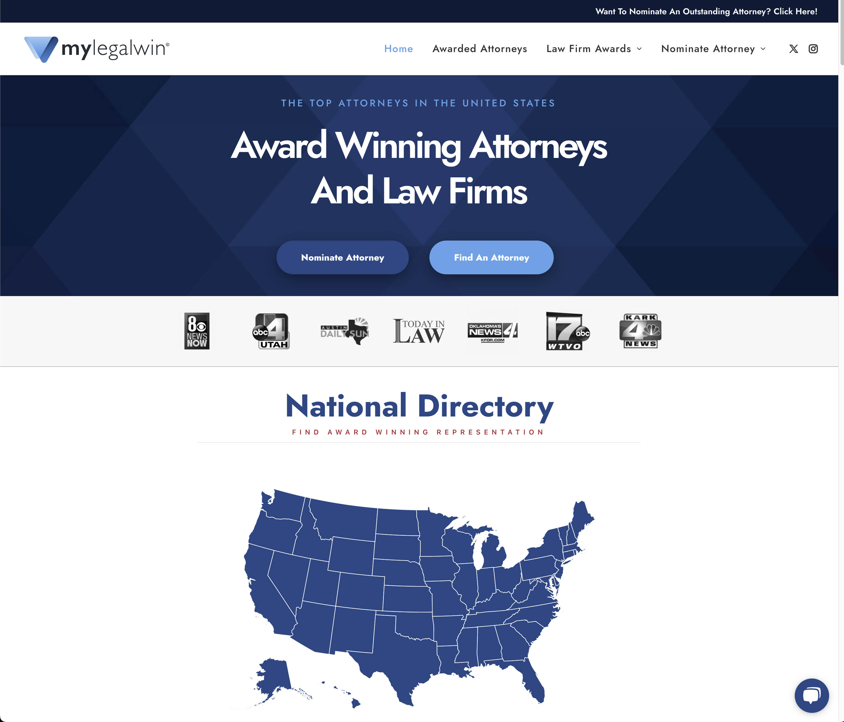 AUSTIN, TEXAS, UNITED STATES, February 7, 2024 /EINPresswire.com/ -- MyLegalWin, a fast-growing hub for legal professionals, proudly announces the launch of its national directory of award-winning attorneys, honoring top legal talent from every specialty in the United States.Since initiating its national outreach on February 5th, 2024, through directly reaching out to deserving attorneys, MyLegalWin is in the process of aggressively expanding its directory and awards program, with ongoing plans to introduce additional features in the coming months.