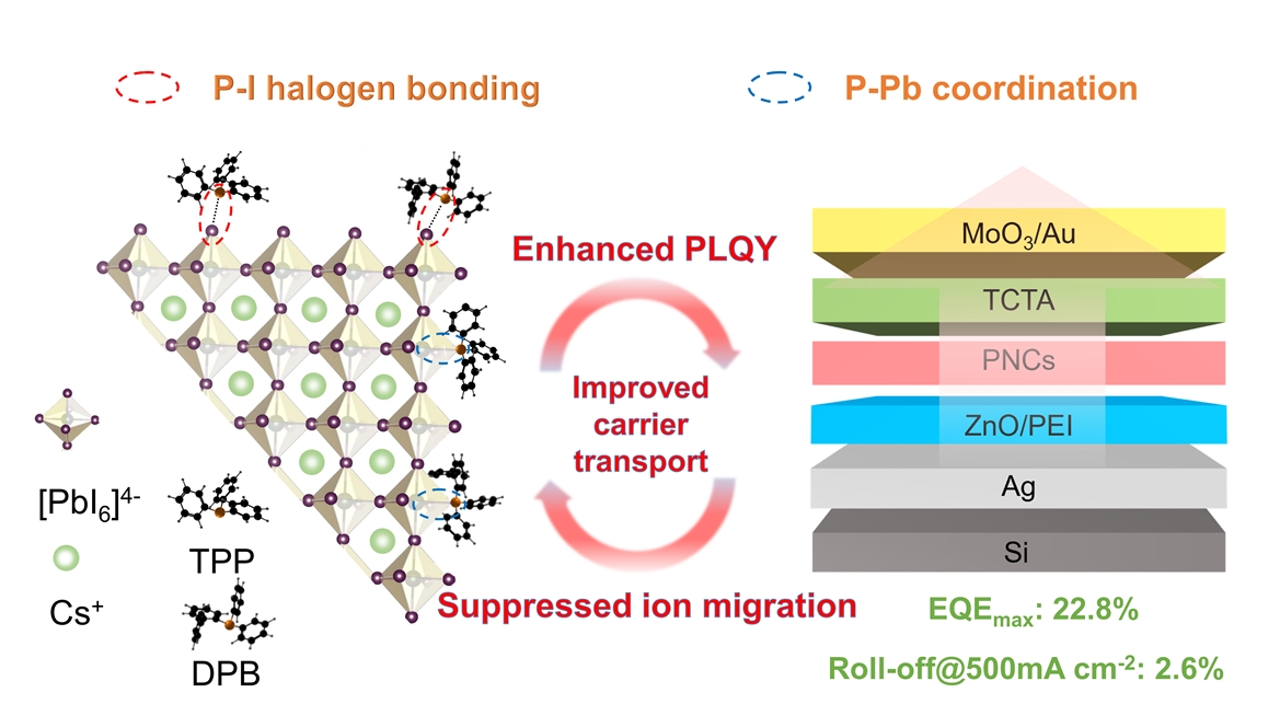 In a new paper (doi: 10.1038/s41377-023-01266-4 ) published in Light Science & Application, a team of scientists, led by Professor Yu Zhang, from State Key Laboratory of Integrated Optoelectronics and College of Electronic Science and Engineering, Jilin University, China and co-workers have revealed new anchoring sites (supramolecular halogen bonds) on the surface of perovskite nanocrystals (PNCs) by employing the classical triphenylphosphine (TPP) ligand and and it derivative 2-(Diphenylphosphino)-biphenyl (DPB).