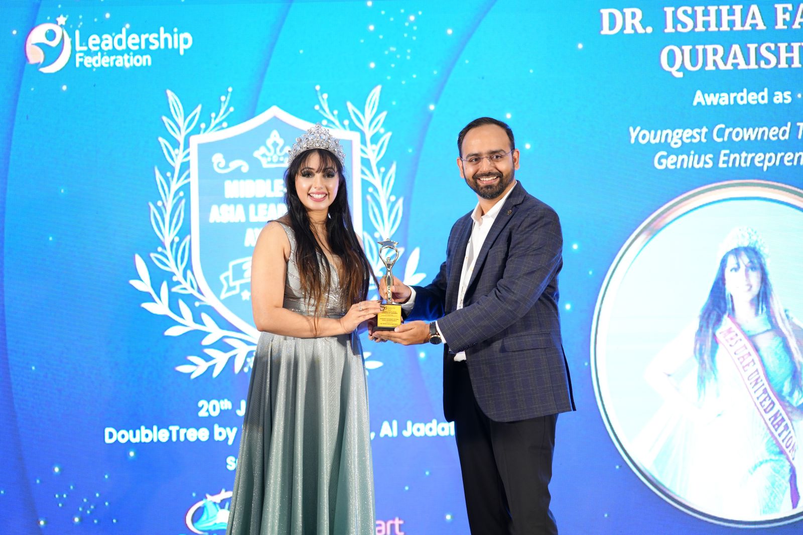 Dr. Ishha Farha Quraishy - "The Youngest Crowned Techno Genius Entrepreneur " honored by World Leadership Federation