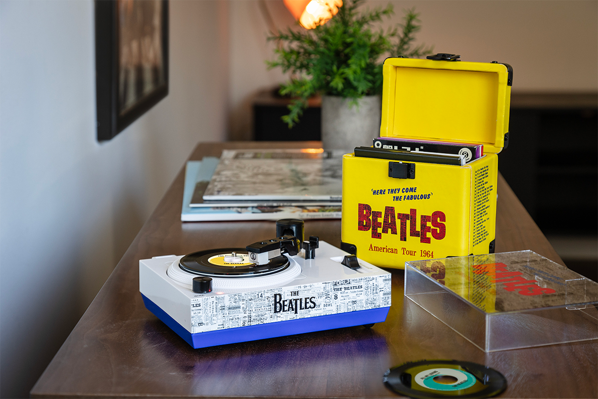 “This has been such an exciting project to see come to fruition with our long-time partners Crosley Radio and Record Store Day,” said Vice President of Licensing at Bravado Joe Marziotto. “Creating this package that enabled us to bundle Crosley’s 3” turntable along with the some of the first songs the band played on the Ed Sullivan Show including ‘I Want to Hold Your Hand,’ ‘Till There Was You,’ ‘I Saw Her Standing There,’ and ‘She Loves You’ that will be sought out by fans and collectors of all ages.”