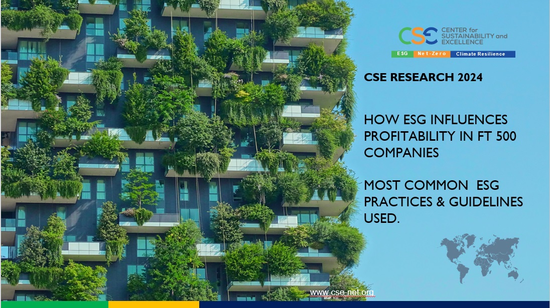 CHICAGO, ILLINOIS, USA, February 19, 2024 /EINPresswire.com/ -- The Center for Sustainability and Excellence (CSE) is pleased to announce the release of its seventh annual research findings on ESG Reporting Trends, providing a comprehensive overview of Environmental, Social, and Governance (ESG) practices from 200 companies listed in the FT 500 across the United States and Canada.This research delves into the intricate correlation between profitability and most common ESG Strategies and Ratings across 21 sectors used by the majority of the most profitable companies per sector.