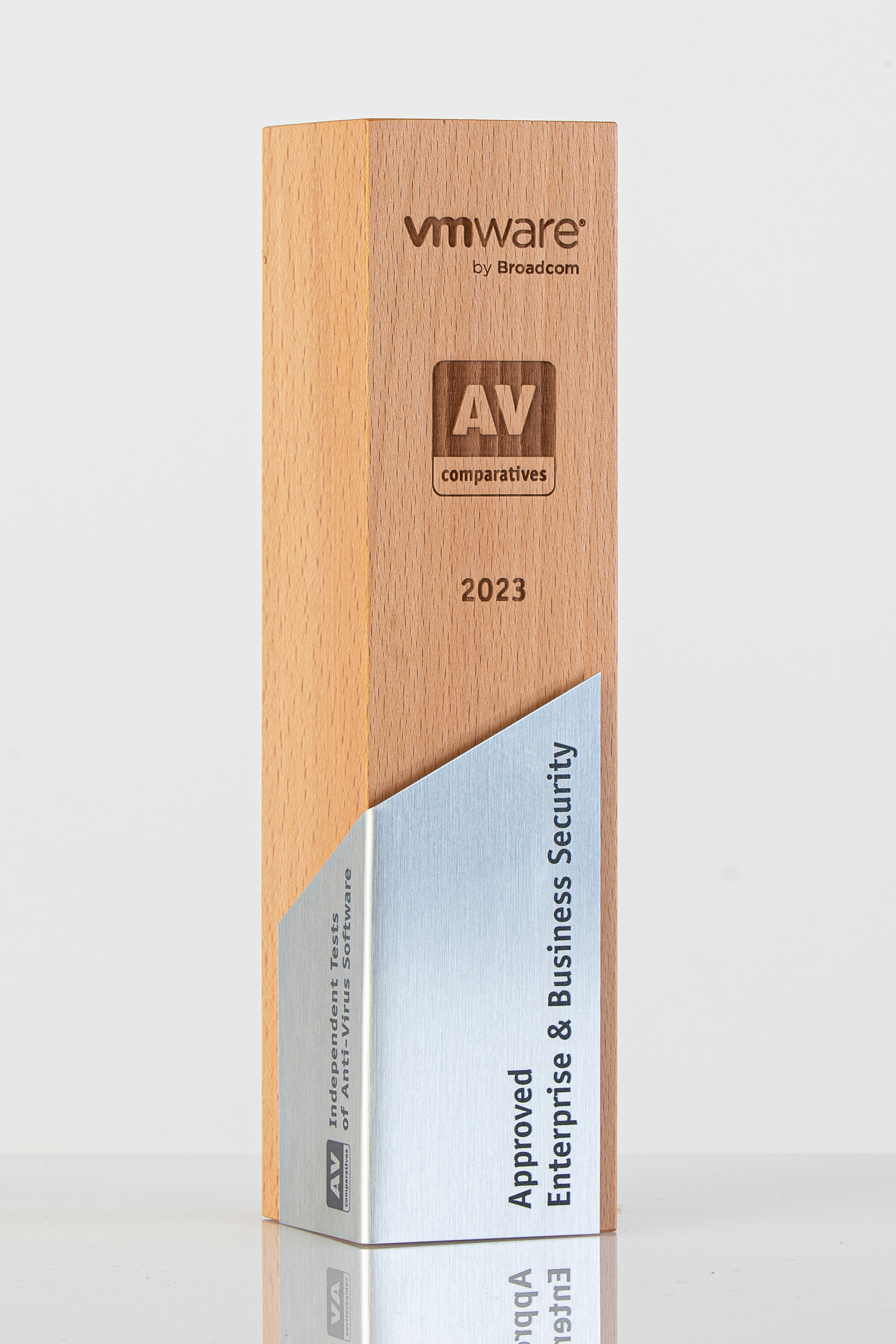 VMware achieved great success in AV-Comparatives’ Enterprise Main-Test Series of 2023, and was rewarded with an Approved Enterprise & Business Security Product Award for both runs of the series. This required it to demonstrate a high level of protection against both Internet-based threats, and malicious files from sources such as external drives or the local area network. It also had to prove that it could provide this protection without impacting device performance or creating false alarms.