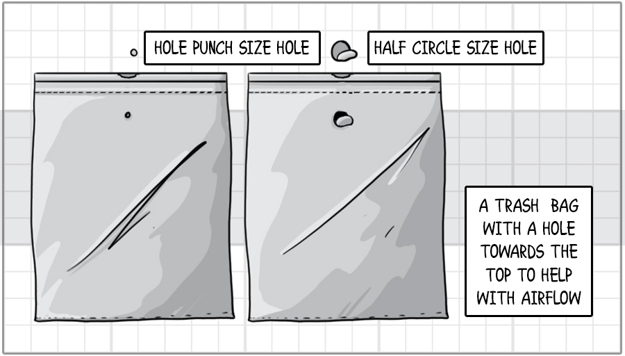 Any person who has installed a trash bag into a trash receptacle has dealt with trying to properly expand the bag and remove air pockets from inside the receptacle. Standard, airtight trash bags are effective at storing and transporting trash, but installation is a consistent and frustrating issue. To combat these types of issues, trash bag manufacturers often engage in product innovation to differentiate themselves in the market. This may include the development of bags with specific features like odor control, extra strength, drawstrings, recyclability, environmental sustainability, and ventilation holes like those seen in the Ventilated Trash Bag. The market is heavily influenced by factors such as population growth, urbanization, waste management practices, and consumer preferences. Innovations like the Ventilated Trash Bag will inevitably enhance growth in this sphere and be a considerably powerful asset to any manufacturer’s product line.