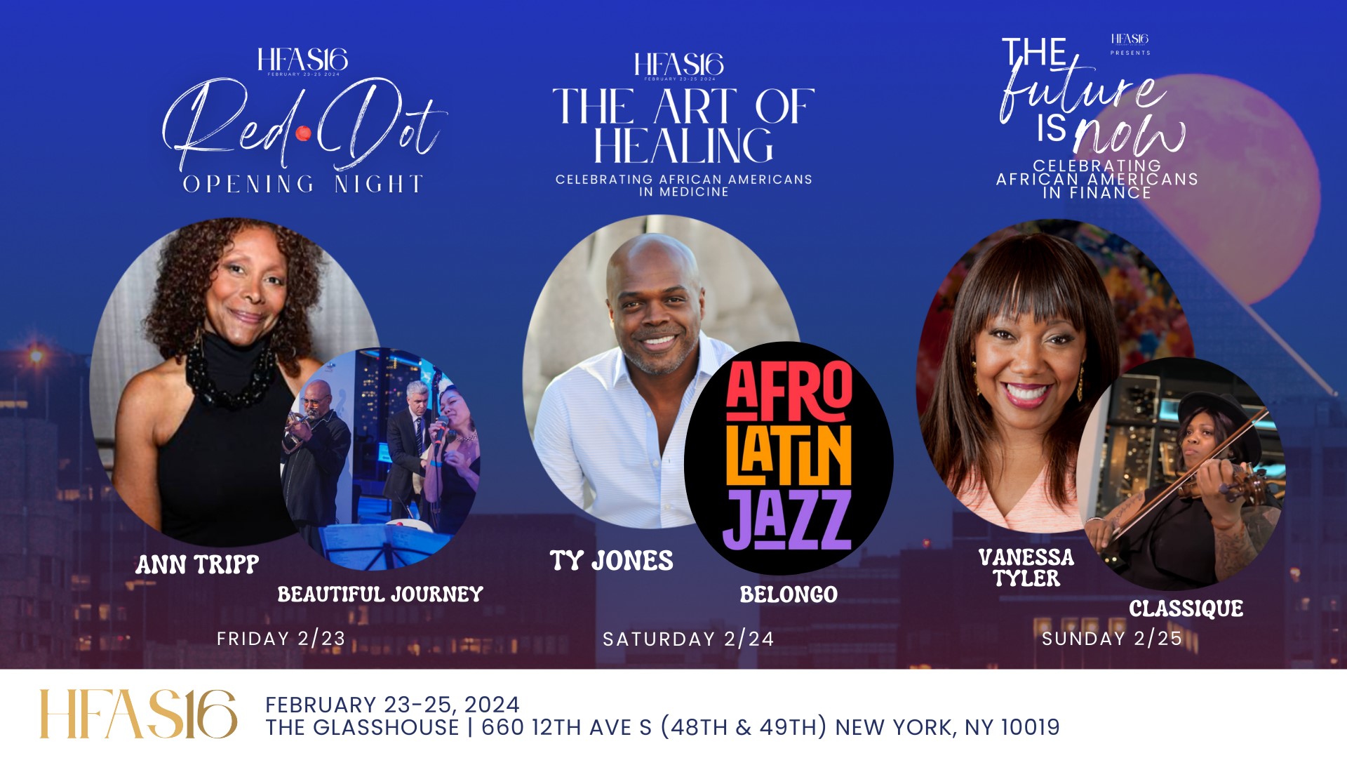 HFAS16 acknowledges the collaboration of its Food & Beverage Partners, including "Catering On Occasion" Caterers by The Gardners, Billionaires Row Spirits, Eleven86 Water, Habanero Papi, Jade Champagne, Papi Wines, Kamiki Spirits, Revanche Cognac and Uncle Nearest, Inc. Lastly, HFAS16 expresses appreciation to its Media Partners, including Pigment International, Sugarcane Magazine, The Culture LP and UP Magazine, whose support has been integral to the organization's success.