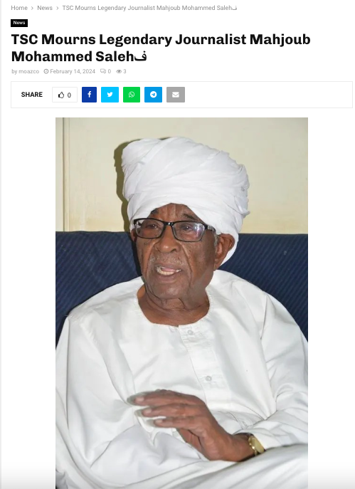 Tributes pour in for ‘Dean of Sudanese press’ and Golden Pen Laureate Mahjoub Mohammed Saleh