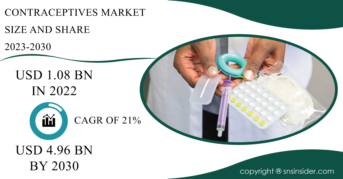 AUSTIN, TEXAS, UNITED STATES, February 19, 2024 /EINPresswire.com/ -- The report provides a comprehensive analysis of the contraceptives market, detailing its current size and anticipated growth. Valued at USD 1.08 billion in 2022, Global Contraceptives Market is expected to reach USD 4.96 billion by 2030, growing at a compound annual growth rate (CAGR) of 21% over the forecast period from 2023 to 2030. The report explores key factors driving this growth, such as increasing awareness about contraception, rising prevalence of unintended pregnancies, and advancements in contraceptive technologies. Additionally, it delves into market trends, including the development of long-acting reversible contraceptives (LARCs), adoption of hormonal contraceptive methods, and regulatory landscape. By offering insights into market size, growth projections, and key trends, the report aims to assist stakeholders in understanding the dynamics of the contraceptives market and making informed decisions to capitalize on growth opportunities.Market Report Scope & Overview