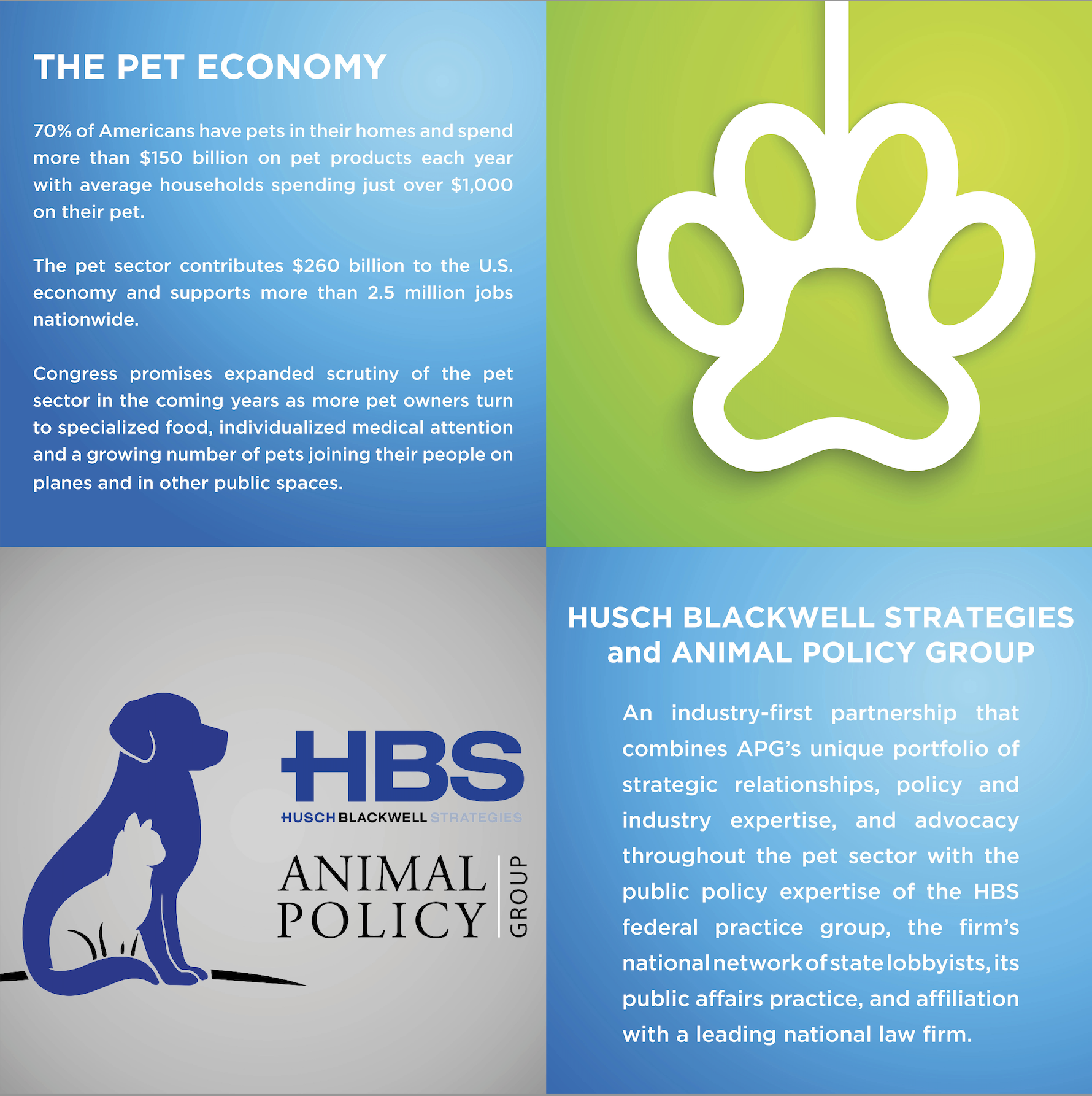 The industry-first partnership combines APG’s unique portfolio of strategic relationships, policy and industry expertise, and advocacy throughout the pet sector with the public policy expertise of the HBS federal practice group, the firm’s national network of state lobbyists, its public affairs practice, and affiliation with a leading national law firm.