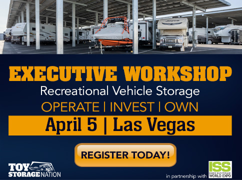 “This industry holds infinite opportunities for RV and boat storage developers, operators and investors,” says Amy Bix, president of Toy Storage Nation. “Our workshop will prove to be an invaluable resource for industry newcomers and seasoned professionals alike, who’ll leave this event with the knowledge, network and inspiration needed to supersede their expectations for achieving success in this amazing industry.”