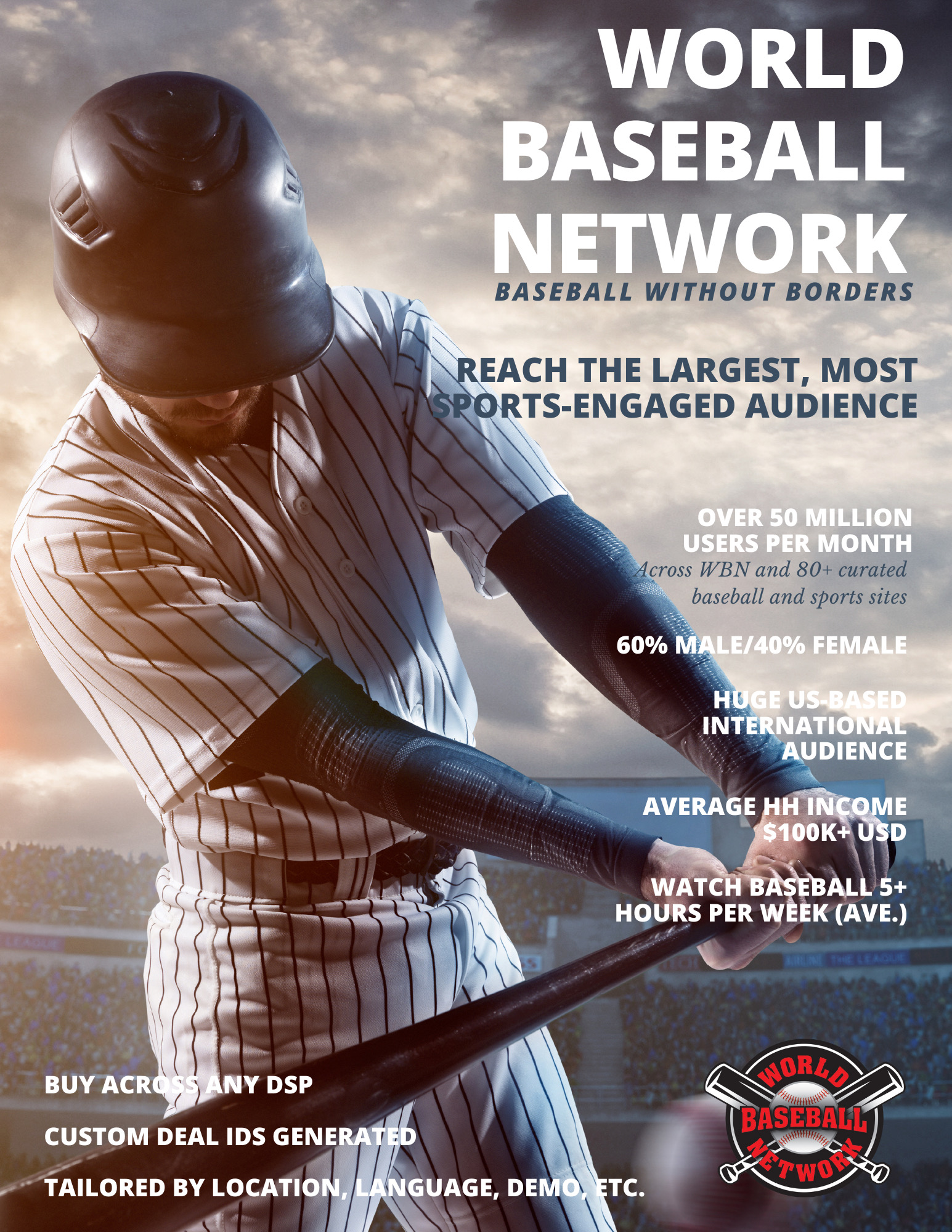 Prior to the creation of the World Baseball Network’s advertising services division, sports- and baseball-aligned marketers either needed to participate in large up-front buying with leagues, broadcast/cable networks and/or distribution rights holders or scramble to find remaining spot inventory on the open market. With this announcement, World Baseball Network dramatically democratizes the availability for advertising alignment with professional sports content at scale.