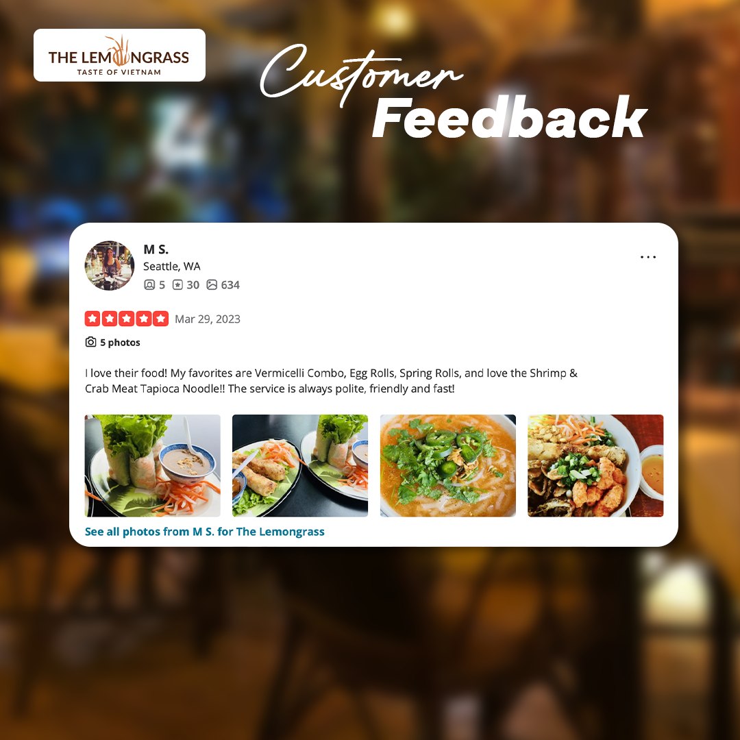 The unwavering commitment of The Lemongrass to quality and authenticity has not gone unnoticed, earning praise from both diners and critics. Testimonials from local patrons, alongside accolades such as its inclusion in the Renton Business Hall of Fame for four consecutive years (2020 - 2023), underscore the restaurant's esteemed status within the community.