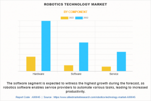 In addition, the logistics and warehousing industry has witnessed significant advancements with the adoption of robotics technology. Autonomous mobile robots (AMRs) and automated guided vehicles (AGVs) are widely used for material handling, order picking, and inventory management, which further contribute to augmenting the global robotics technology market forecast. Furthermore, the demand for robotics technology market continues to rise driven by the need for versatility, precision, and automation capabilities of robots that continue to drive innovation and transform operations, enhancing productivity in businesses.