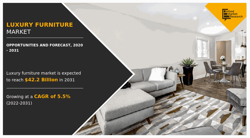 According to a new report published by Allied Market Research, titled, "Luxury Furniture Market," The luxury furniture market size was valued at $23,771.90 million in 2020, and is estimated to reach $42,159.40 million by 2031, growing at a CAGR of 5.5% from 2022 to 2031. Growth in online mode of sale, rapid urbanization, and change in lifestyle, owing to increased disposable income of the consumers drive the luxury furniture market growth. In addition, development in Asia-Pacific and LAMEA is anticipated to create lucrative global luxury furniture market opportunities.
