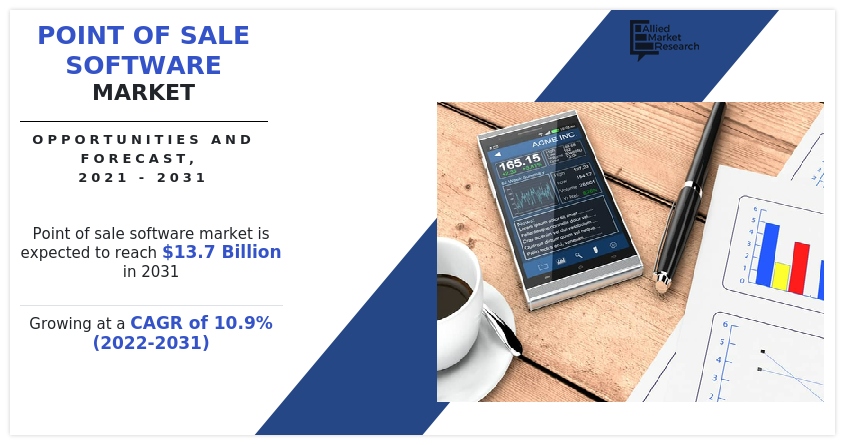According to a new report published by Allied Market Research, titled, “Point of Sale Software Market," The point of sale software market was valued at $4.9 billion in 2021, and is estimated to reach $13.7 billion by 2031, growing at a CAGR of 10.9% from 2022 to 2031. Point of sale software is being significantly used by retailers to conduct sales, carry out cashless transactions, keep track of inventory records, and improve sales strategy across retail chains.