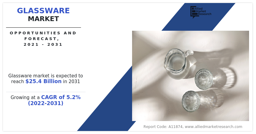 DELAWARE, WILMINGTON, UNITED STATES, February 24, 2024 /EINPresswire.com/ -- The global glassware market size was valued at $15.2 billion in 2021 and is projected to reach $25.4 billion by 2031, growing at a CAGR of 5.2% from 2022 to 2031.Glassware Market The study presents an impending revenue forecast of the industry for the next few years coupled with imminent market trends and opportunities. Moreover, the study also doles out different logical tables and graphs to identify the complexities of the market.