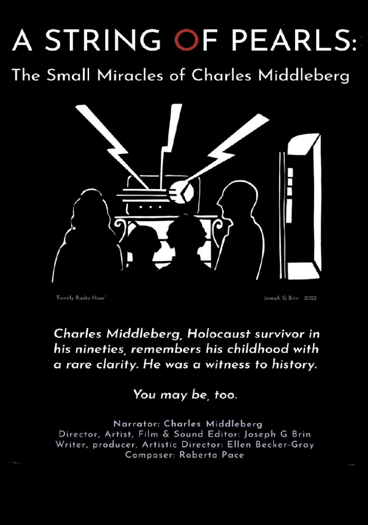 About the film -- A String of Pearls: The Small Miracles of Charles Middleberg, is a moving collection of storytelling gems... or pearls, the extraordinary childhood memories of a survivor, then in his nineties. With charm, passion, wit and exceptionally sharp recall, you will be drawn into Charles' childhood stories based in WWII occupied Paris. One viewer described feeling emotions she'd never felt before. The screening of 39 minutes in length will be followed by a Q&A with the filmmaker/director of Cyclorama Films himself, Joe Brin.