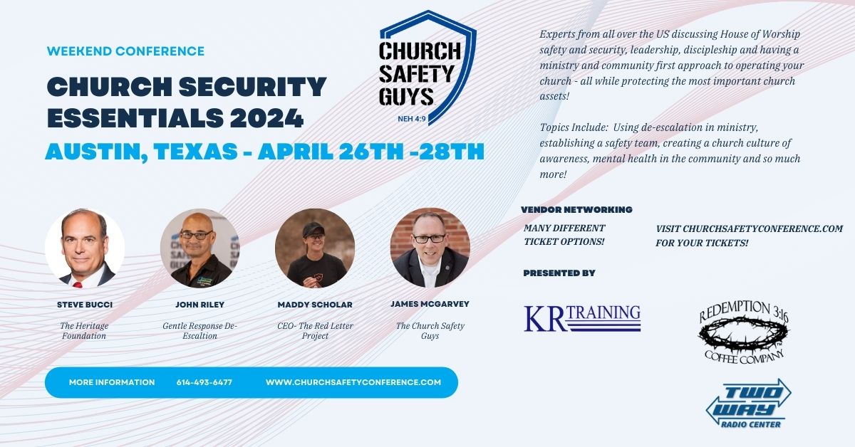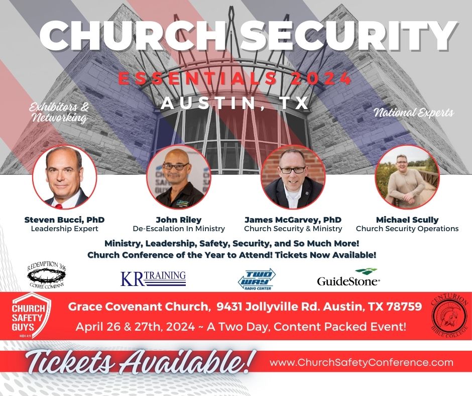 AUSTIN, TEXAS, UNITED STATES, February 27, 2024 /EINPresswire.com/ -- Grace Covenant Church is pleased to announce that on April 26th and 27th, the Church Safety Guys will be presenting their highly anticipated Church Security Essentials 2024 seminar. This two-day event will provide valuable information and resources for churches looking to enhance their security measures and ensure the safety of their congregation.With the rise of violence and threats against houses of worship, it has become increasingly important for churches to have proper security protocols in place. The Church Safety Guys, a team of experts in church safety and security, have developed a comprehensive program that covers all aspects of church security, from risk assessment to emergency response. Their focus is emphasizing this while keeping ministry and community the priority.
