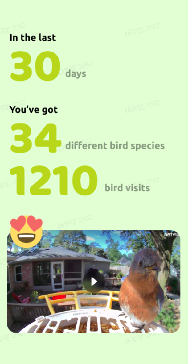 Each Birdfy user will have the option to export the Recap by copying a link or generating an adorable poster. The poster will display the best scenes and a summary of the statistics, enabling users to share and preserve these moments in their gallery.