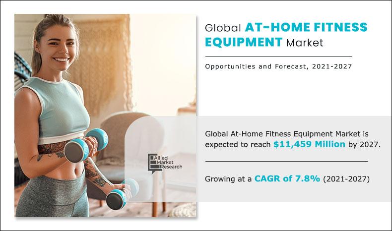 DELAWARE, WILMINGTON, UNITED STATES, March 4, 2024 /EINPresswire.com/ -- According to a new report published by Allied Market Research, titled, "At-Home Fitness Equipment Market by Product Type, Distribution Channel, End User, and Price Point: Global Opportunity Analysis and Industry Forecast, 2021-2027," the at-home fitness equipment market size is expected to reach $11,459 million by 2027 at a CAGR of 7.8% from 2021 to 2027. Fitness equipment are widely used for physical fitness, weight management, and improving body stamina & muscular strength. The commonly used at-home fitness equipment are treadmills, stationary cycles, stair climbers, rowing machines, elliptical, and free weights. Rise in awareness regarding health & fitness, increase in obese population, government initiatives to promote healthy lifestyle, and increase in youth population are the major factors that drive the growth of the global at-home fitness equipment market. Moreover, upsurge in youth population, improved lifestyle, and rise in disposable income of individual in developing countries are anticipated to offer immense opportunities for the market players.