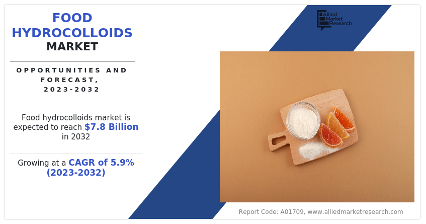 WILMINGTON, NEW CASTLE, DELAWARE, UNITED STATES, March 4, 2024 /EINPresswire.com/ -- According to a new report published by Allied Market Research, titled, βFood Hydrocolloids Market," The food hydrocolloids market was valued at $4.4 billion in 2022, and is estimated to reach $7.8 billion by 2032, growing at a CAGR of 5.9% from 2023 to 2032.