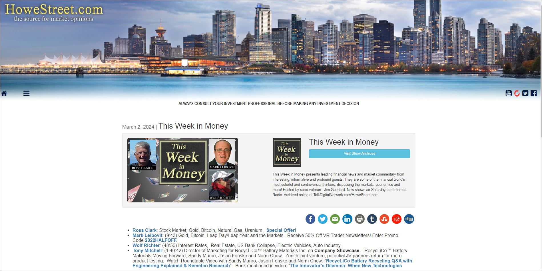 SCOTTSDALE, ARIZONA, UNITED STATES, March 6, 2024 /EINPresswire.com/ -- The Howe Street Radio Podcast, a leading source of financial and economic news, is proud to announce the addition of renowned analyst Mark Leibovit to their weekly broadcast. With over 40 years of experience in the industry, Leibovit brings a wealth of knowledge and expertise to the show, providing listeners with valuable insights and analysis on the latest market trends.Leibovit is a highly respected figure in the world of finance, having been featured in major publications such as The Wall Street Journal, Barron's, and Forbes. He is also the author of the popular book "The Trader's Book of Volume," which has been praised by industry experts for its practical and informative approach to trading. With his extensive background in technical analysis, Leibovit has become a trusted source for investors seeking to make informed decisions in the ever-changing financial landscape.