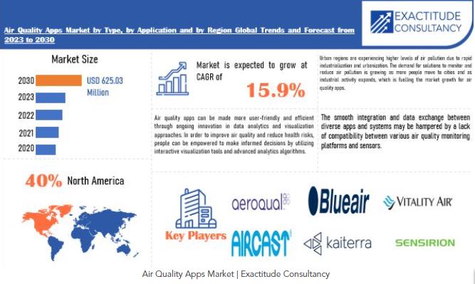 Air Quality Apps Market Size to Worth USD 625.03 million by 2030 | With a 15.9% CAGR by Exactitude Consultancy